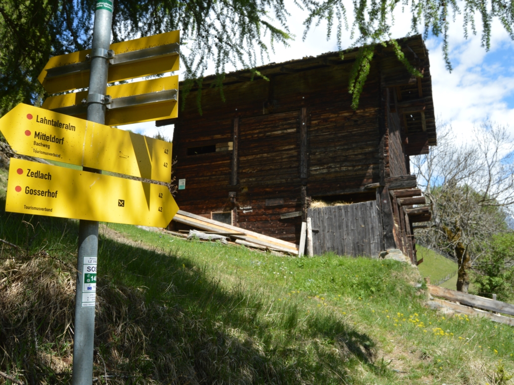 Panda Marin Parkplatz – mit BMW Matrei i.O. – Tauerntalwanderweg – Prossegg – Thiemeweg – Strumerhof – Zedlacher Paradies – Zedlach – Abbüßersteig – Mitteregge – Lanthaleralm – Sonnberg Virgen – Rabensteinweg – Marin – Panda Matrei i.O. – 20 km