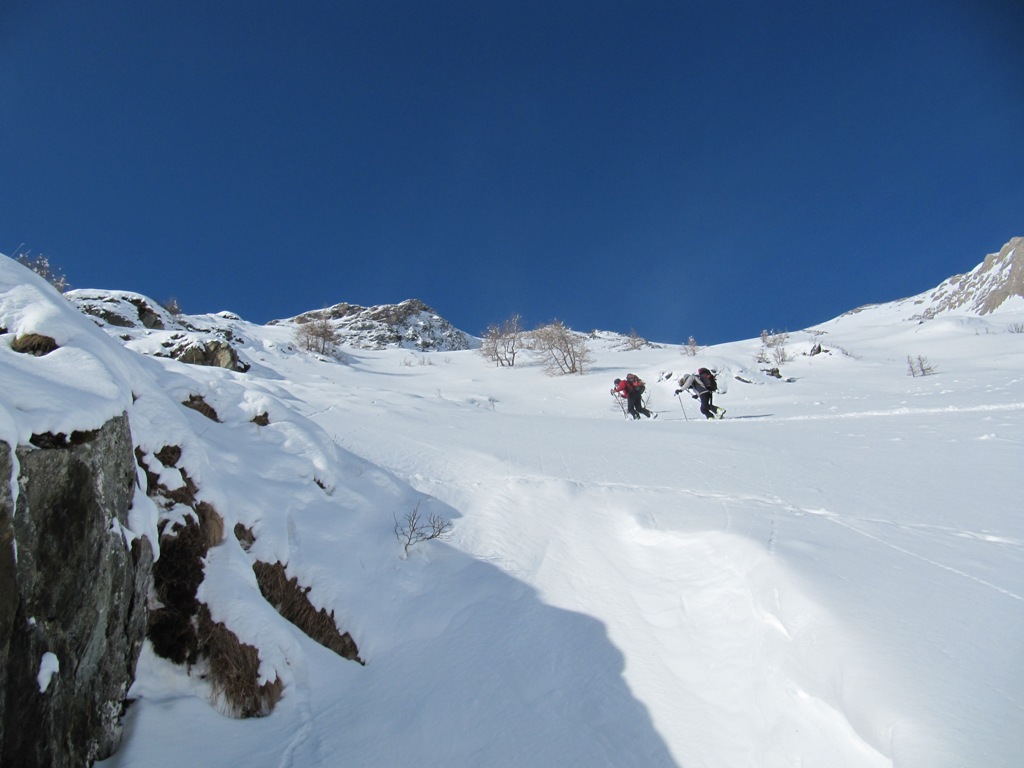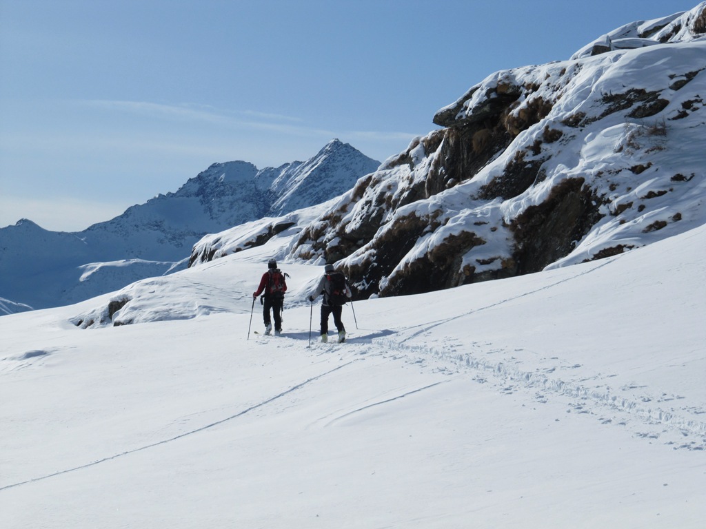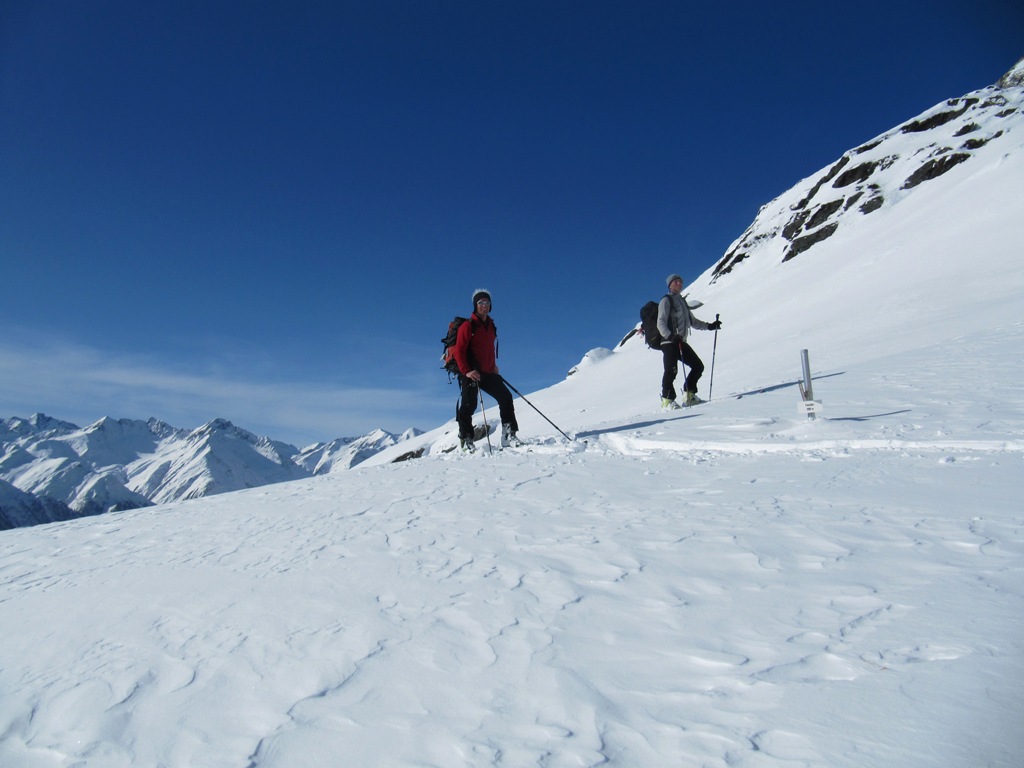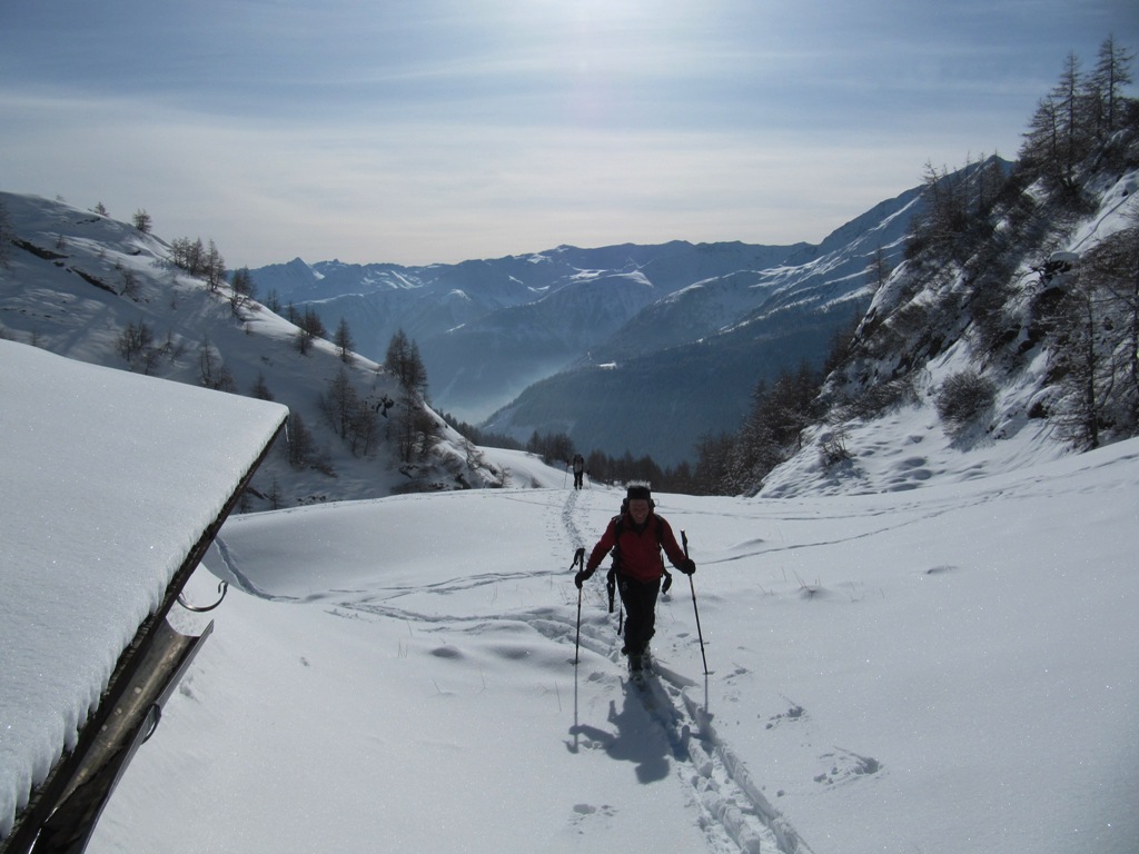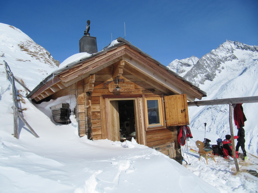 Die Fensterhütte ist kein eigentliches Skitourenziel. Der Zustieg ist sehr steil, und muß lawinenmäßig immer neu beurteilt werden. Da dort oben aber unsere kleine Privathütte steht, zieht es uns immer wieder hinauf. Der Blick nach Prägraten hinunter ist beeindruckend.